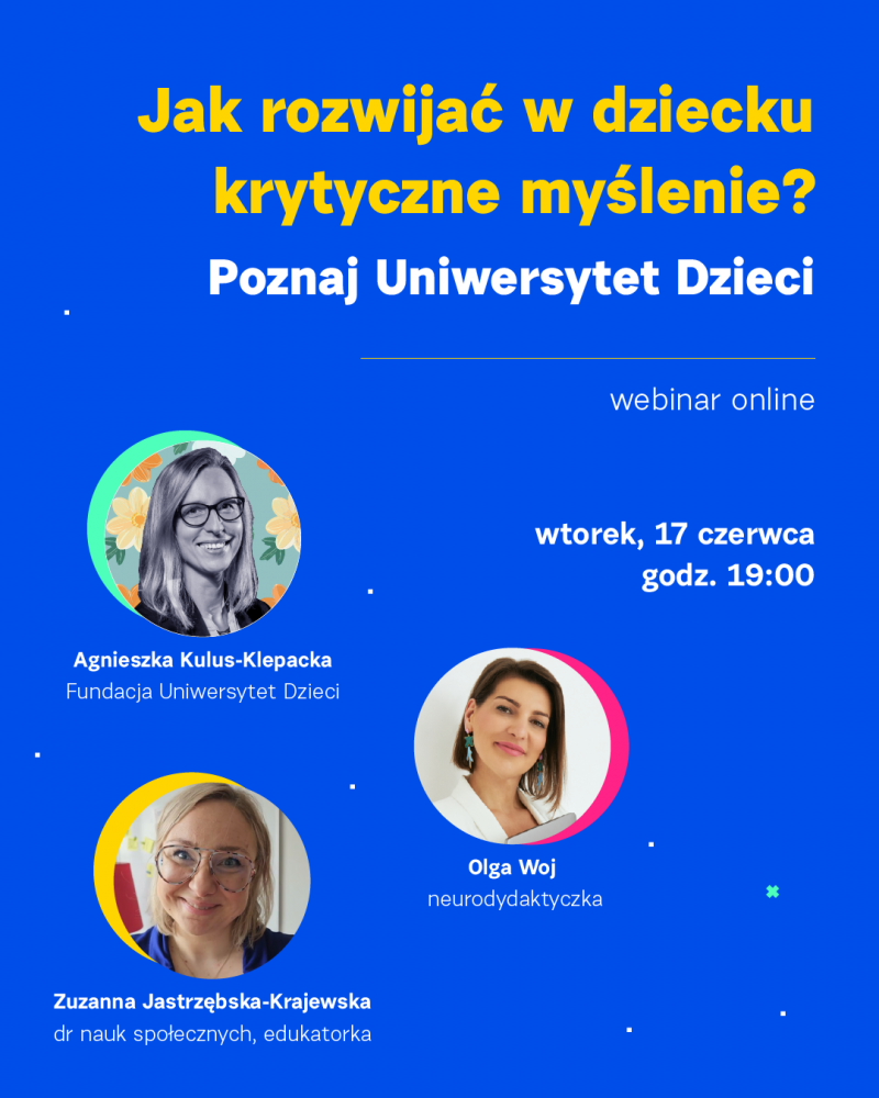 Rozmowę poprowadzi dyrektorka krakowskiego ośrodka Uniwersytetu Dzieci –